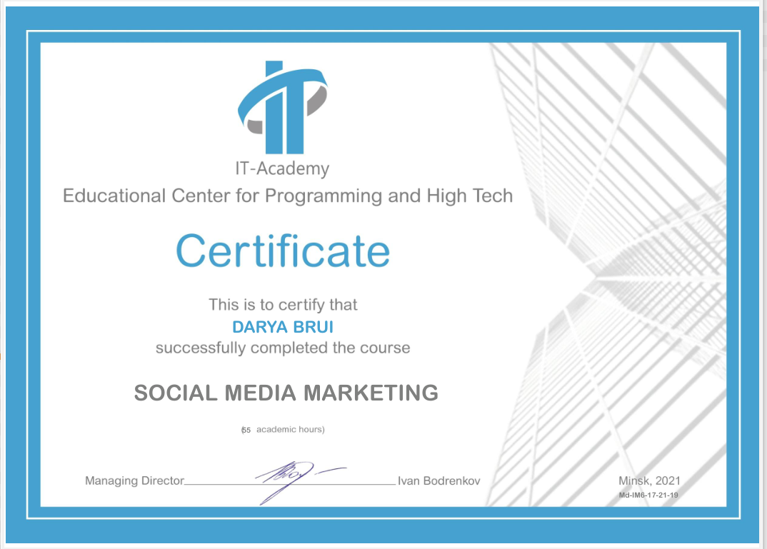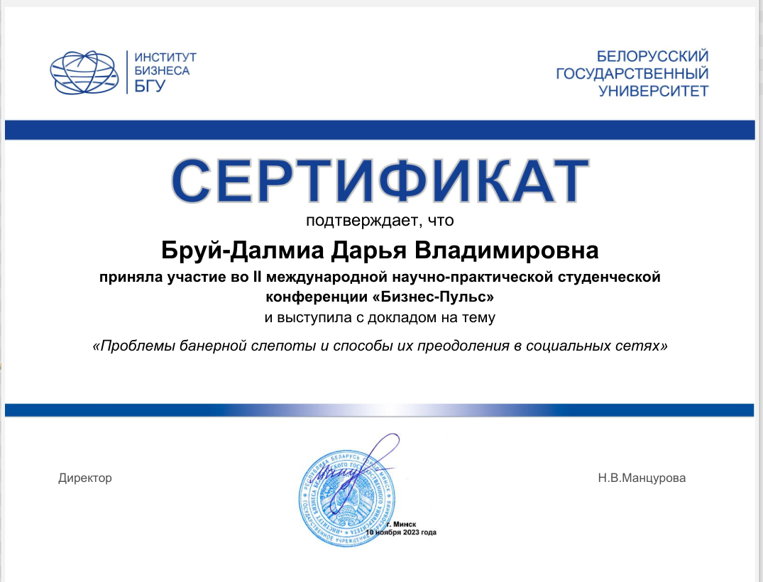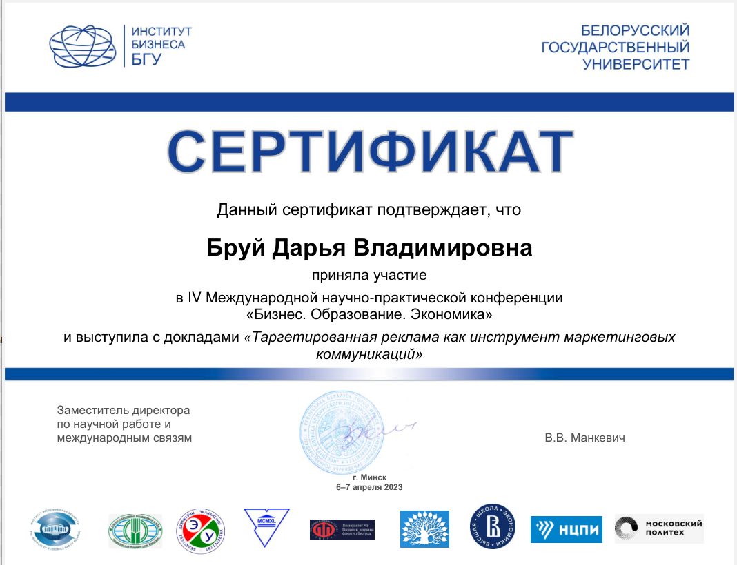 Магистр по специальности маркетинг (БГУ: специализация: маркетинговые коммуникации в цифровой экономике)
